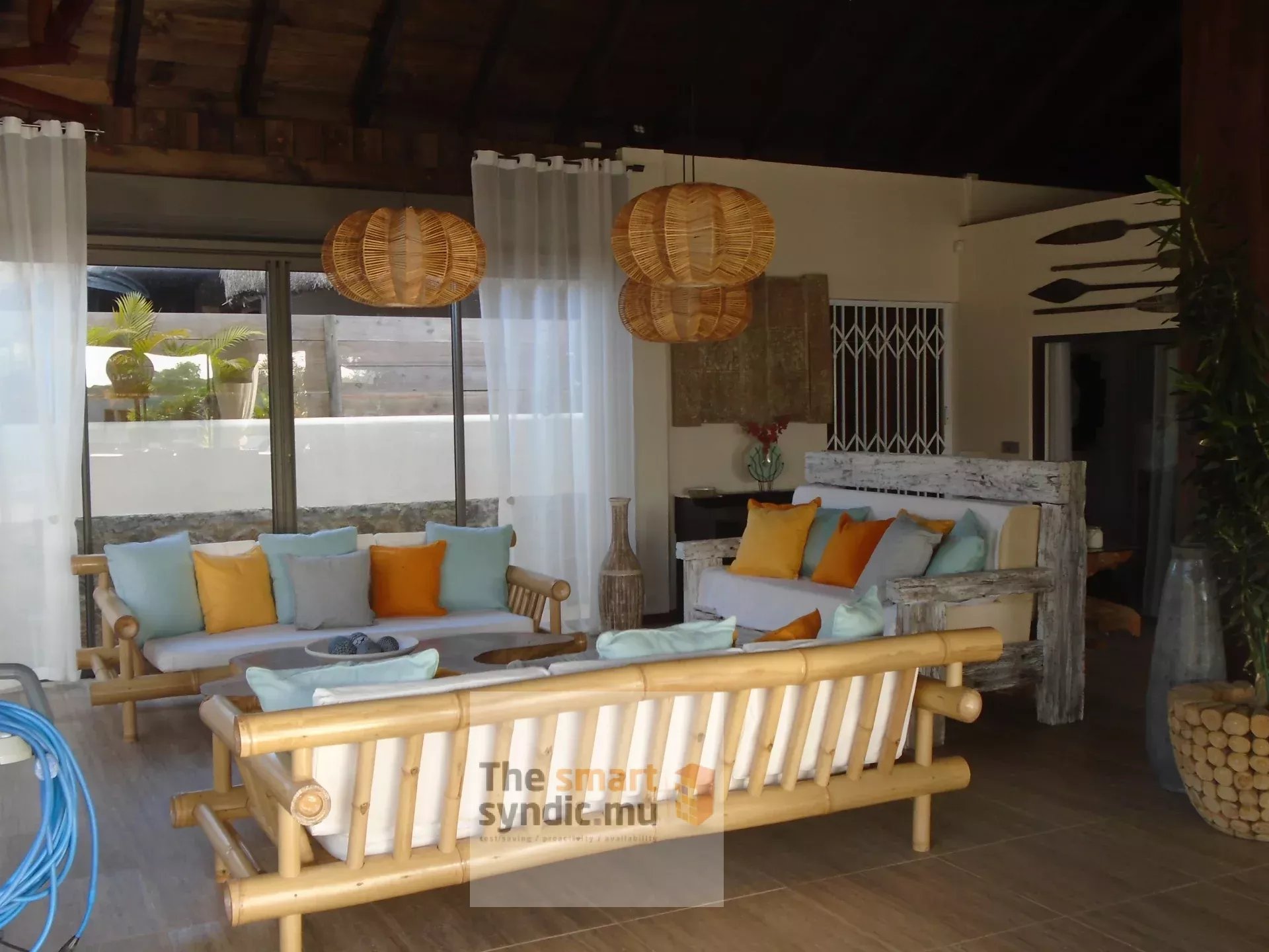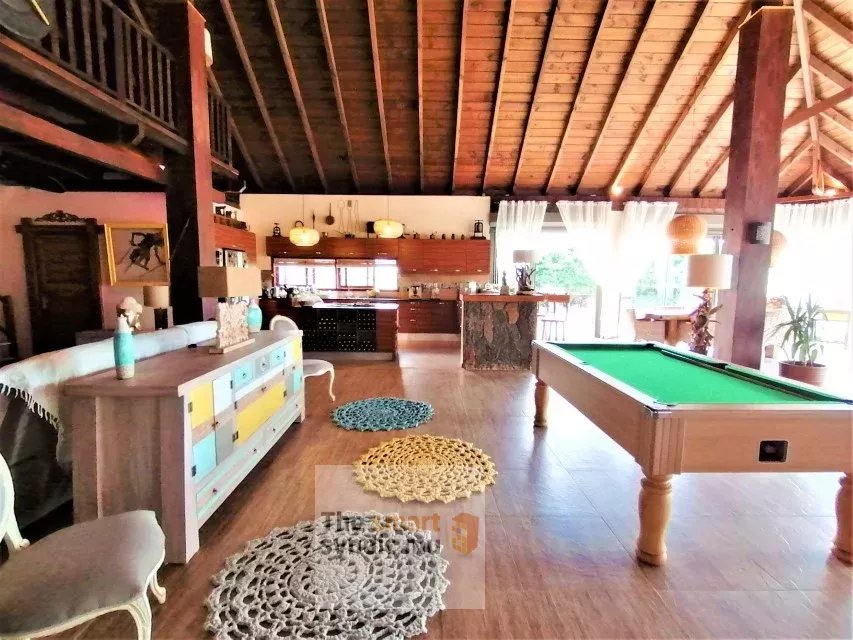 Découvrez cette superbe villa à l’architecture balinaise avec charpente en bois, offrant une surface intérieure d’environ 525 m², implantée sur un terrain en pleine propriété de 970 m², dans un environnement calme et résidentiel.