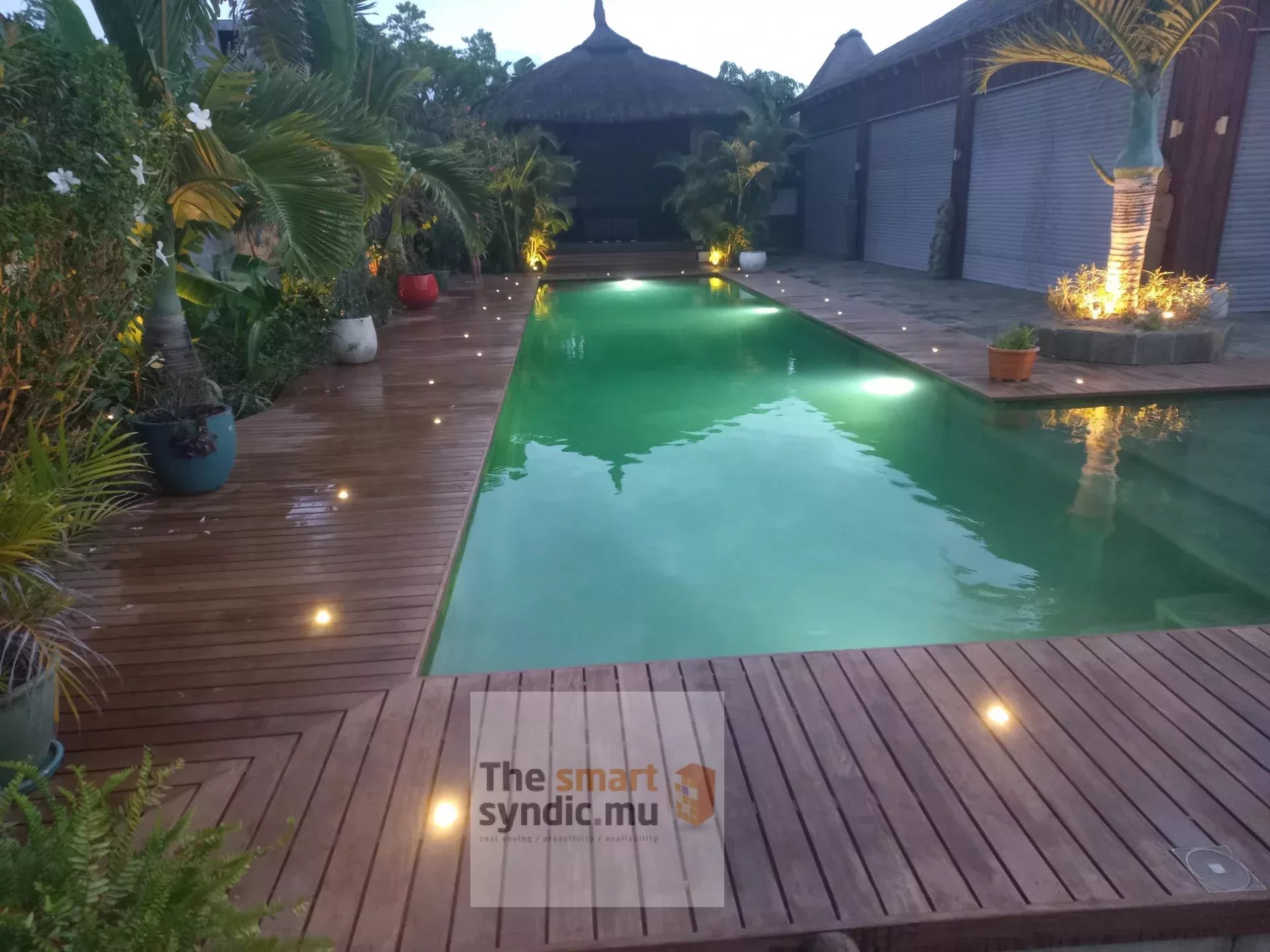 À l’extérieur, le jardin, la piscine en ardoise et le gazebo/kiosque créent un espace idéal pour la détente et les réceptions.