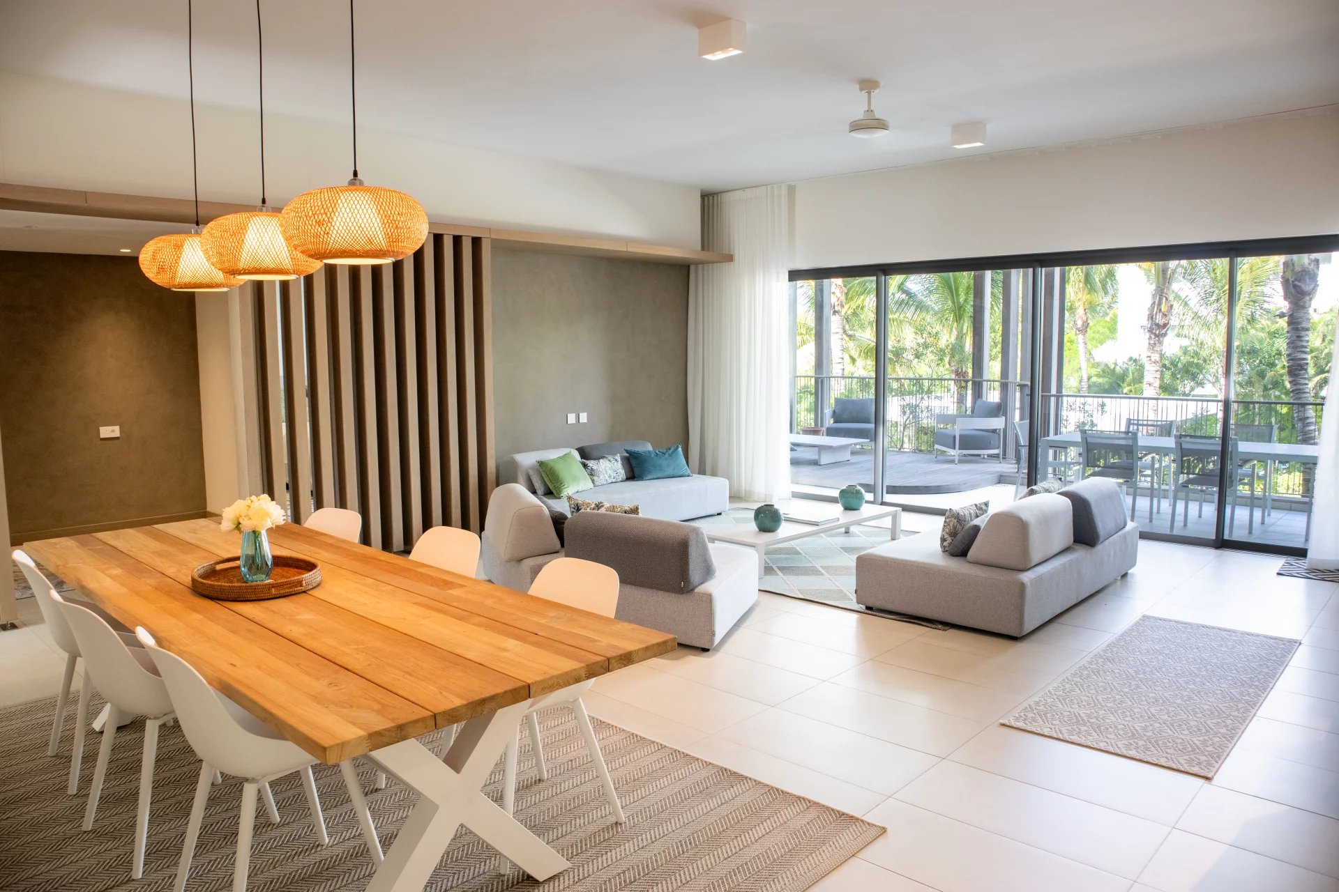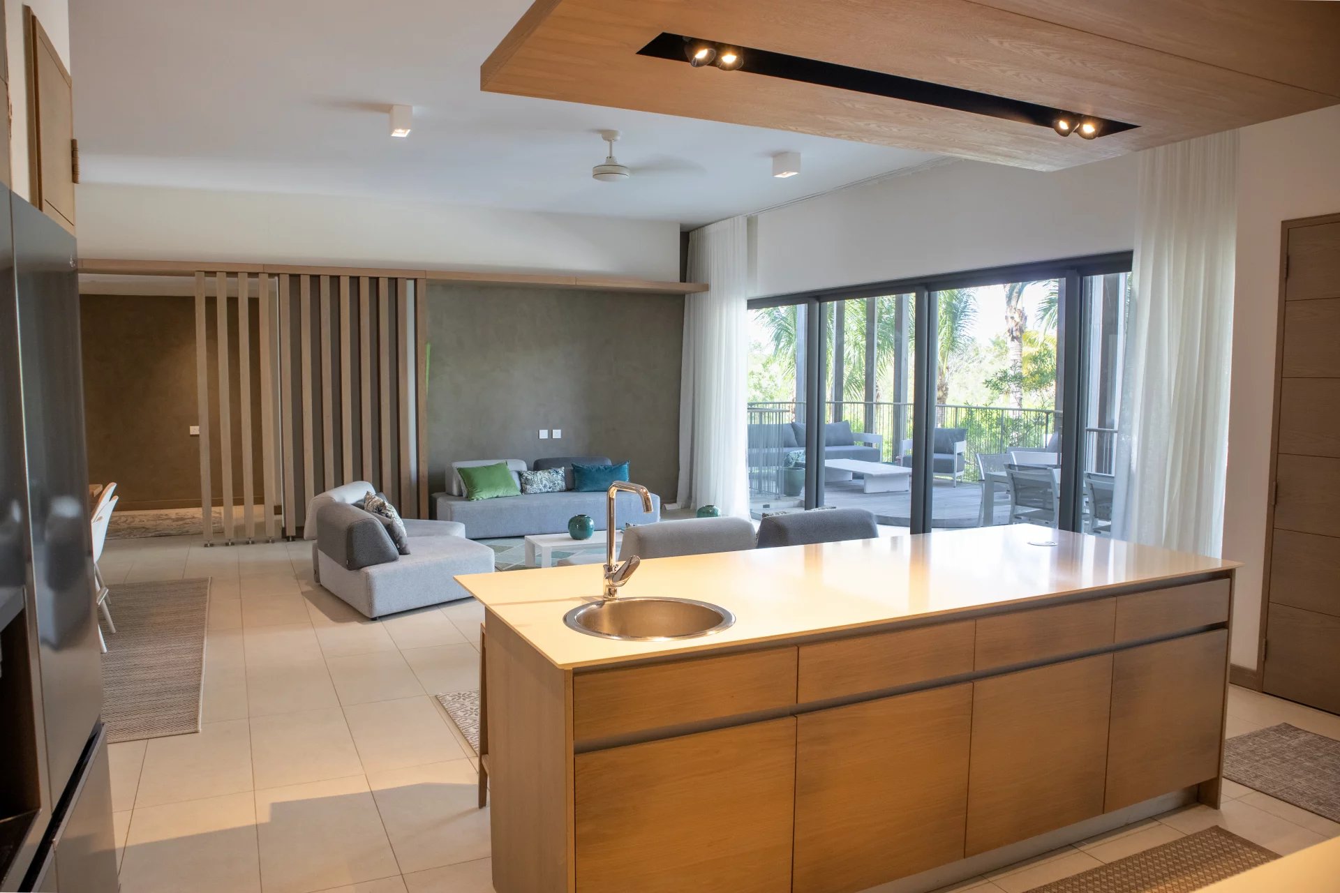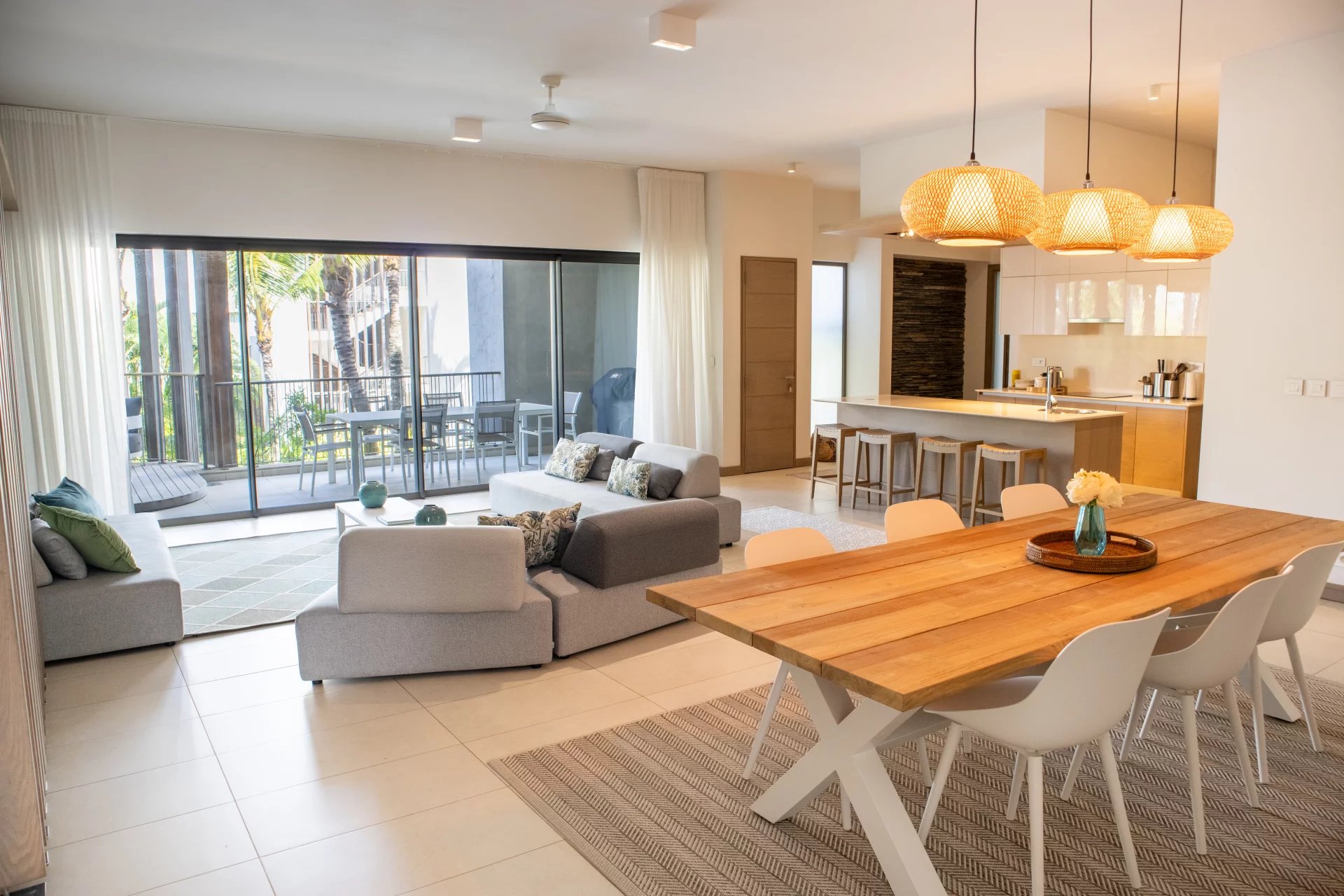 It features a fully equipped kitchen open to a bright and spacious living area, perfect for modern and convivial living. The sleeping area includes 3 en-suite bedrooms, each with a private bathroom, ensuring optimal comfort and privacy.